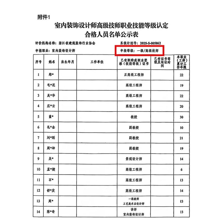 在本次室内装饰设计师职业技能考证中,每一位学员都凭借扎实的专业知识和出色的实操能力,成功拿下了属于自己的证书。其中,申报等级的表现尤为亮眼,具体如下